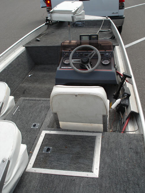 This is a very clean 17ft Bass Tracker T-17 Tournament Aluminum Bass boat. This boat has been used exclusively in freshwater and has been stored indoors. The Motor is in pristine condition and runs great. The trailer has recently had new tires put on it and it is in very good shape. If you are in the market for an alumium bass boat this is the package. The motor was completely serviced and is 100% ready to go. We have fully tested this boat and it runs great. We clocked it at 32mph. The engine performs perfect. The livewell and bildge are operational.