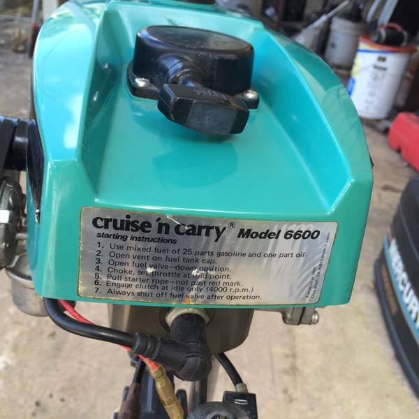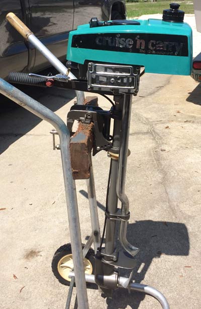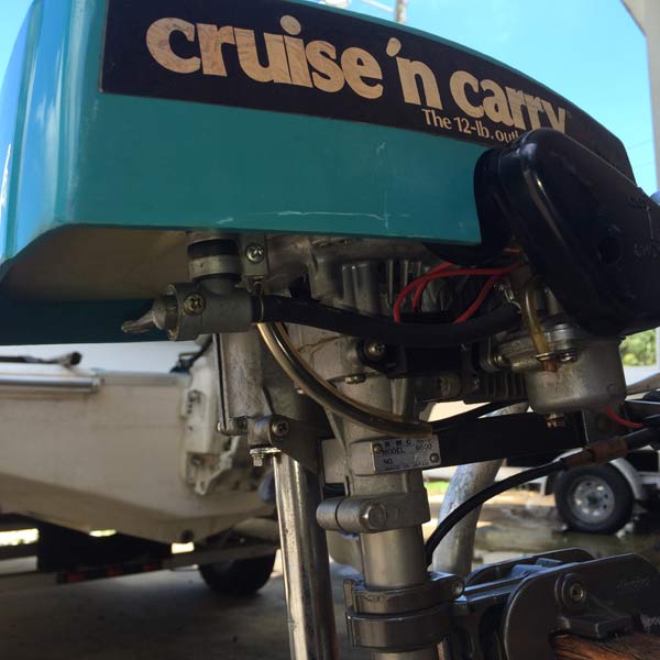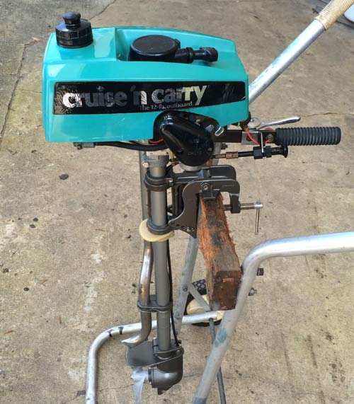 This is a perfect running 1.5 hp Cruise 'n Carry Outboard boat motor. This motor is air cooled with an internal gas tank, twist grip throttle, and neutral gear!. This motor is in excellent shape and runs perfect. The previous owner claims it was used very little. The engine looks very clean and appears to have very low hours. This motor has been boat tested and delivers excellent power for its weight. This engine is only 12lbs which makes it one of the lightest outboards ever made. This is the ideal outboard motor for a canoe, raft, dingy, trolling motor, kicker, bass tender, Jon boat, sailboat, etc.