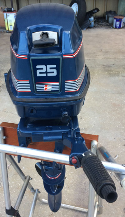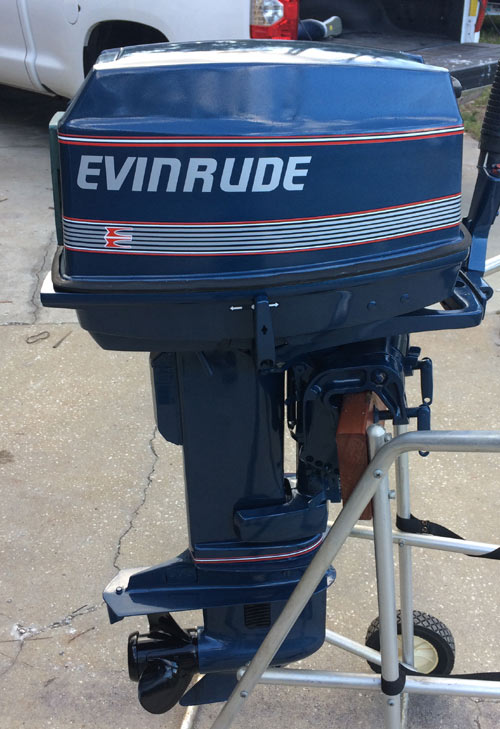 This is a great running 25 hp Evinrude Outboard. This is a short shaft motor with a tiller handle. This 25hp Evinrude weighs around 110lbs. It is a 2-stroke premix outboard. This engine starts very quickly, has perfect compression, pumps water excellent, and shifts into gear smoothly. We have fully boat tested it and it runs excellent. We repainted this motor with a Dupont Paint Job and put brand new decals on it. This would make a perfect outboard for a Boston Whaler type skiff, Commercial Work Skiff, Mullet Boat, John Boat, Sailboat, Bass Boat, Gheenoe, Portable Boat, Pontoon, Flats Skiff, large inflatable, or any other small water craft. Please look at detailed pictures to get an accurate description of detail. Very nice Evinrude Outboard........"the brand that started it all"