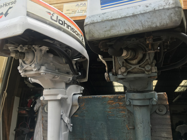 These are Johnson and Evinrude 2hp 2-stroke outboard boat motors. Both engines are very light weight at aroung 25lbs each. These engines are 2-stroke and have self contained gas tank. We have fully serviced both engines and they are ready to go. These motors will be perfect for small row boats, canoes, or to use as an emergency kicker.