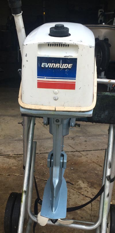 This is a nice 4.5 hp (5 hp) Evinrude Outboard Motor in great condition. This 4.5hp Evinrude was used mostly in freshwater. This 4.5 hp Evinrude has has forward, neutral, and reverse. Most 4hp and 5hp, and some 6 hp outboard motors now are 1 cylinder and some don't even include a reverse gear. This motor has 2 cylinders, weighs 45lbs, and delivers the power of some 6hp engines. The big deal about 2 cylinder outboards is that you get a much smoother running engine that trolls and runs like a dream. The engine will have less vibrations and less of a work load because it will have two cylinders producing thrust rather than one doing all the work. You will be amazed at how powerful this motor is and how fast it will push your boat.We have fully boat tested this engine and it performs excellent. Very popular outboard engine since they are light, includes a gas tank, easy to repair and find parts for, and very powerful. Please review each photograph to get a visual description of motor condition. Perfect trolling motor, kicker, fishing engine, back-up engine, sail boat motor, canoe outboard, skiff outboard, jon boat outboard, inflatable outboard, or any other water craft that requires a portable Outboard Motor.