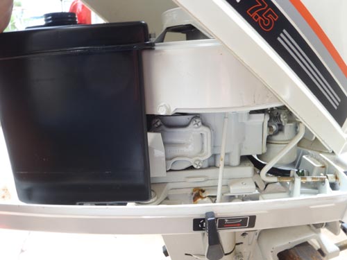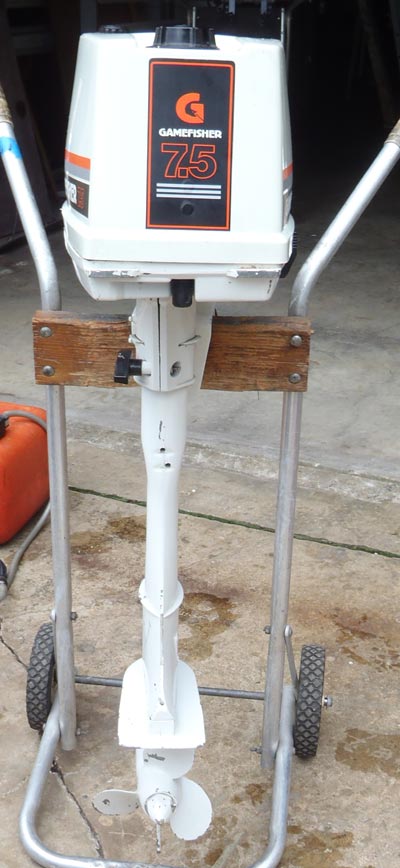 This is a 7.5hp Sears Gamefisher air-cooled outboard boat motor for sale. This 7.5hp Gamefisher has a 15" short shaft and is a tiller style motor. It has an internal gas tank or can use an external gas tank. This engine has very low hours and was only used on a freshwater lake. The original owner stored the motor inside when not in use. This engine weighs around 40lbs which makes it ideal for most small boats. This 7.5hp Gamefisher runs excellent. We have fully boat tested this motor and it is ready to go. This would make a perfect little engine for any small boat that can handle a 40lbs. short shaft outboard.