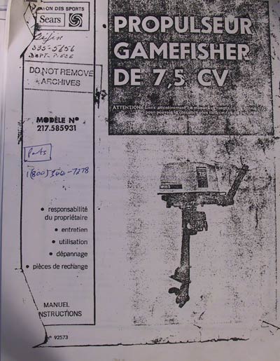 This is a very Clean. Gamefisher 7.5 outboard motor from Sears. This motor only weighs about 40lbs and produces lots of power. This motor has been completely tested out and runs great. This is an Air cooled model that features a water pump only for the exhaust system. This motor is very popular because of how easy it is to transport. This would make an ideal motor for a canoe, Jon boat, dingy, inflatable, sailboat, or any other small water craft. This is a Short Shaft 15", Two Stroke, Air Cooled outboard. Parts are very easy to get through www.sears.com.