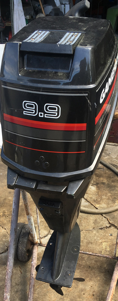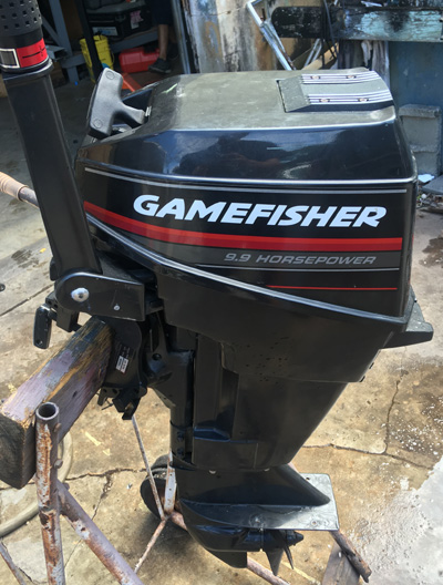 This is a Sears Gamefisher 9.9 hp outboard boat motor. This motor is a 2 stroke, 2 cylinder, short shaft, manual start tiller model outboard motor. This motor weighs only about 65lbs, perfect for small boats and to transport. We have fully boat tested this motor and it runs strong. It fully planes out our 13.6 ft boston whaler. Please review each photograph to get a visual description of motor condition. Perfect trolling motor, kicker, fishing engine, back-up engine, sail boat motor, canoe outboard, skiff outboard, jon boat outboard, inflatable outboard, or any other water craft that requires a 9.9hp-15 hp Outboard Motor