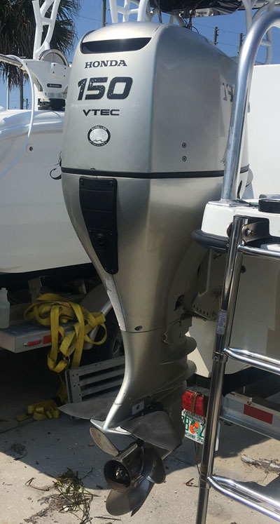 These are Twin(2) 150 hp Honda 4-Stroke Outboard Boat motors for sale. These engines have around 475 original hours on them. We have fully boat tested thse motors on a boat and they performed excellent under load. These engines have 25" shafts. Compression is very strong on these motors. The exterior paint on both of these engines is a little faded from being out in the sun. The engines cool properly, shift smoothly, idle great, and run out strong under load. We can provide a video of our boat test. These engines are counter-rotation and will be ideal for any twin outboard boating application. Included with the motors are the complete rigging components. You will not have to add anything. These motors run strong and are ready to go.