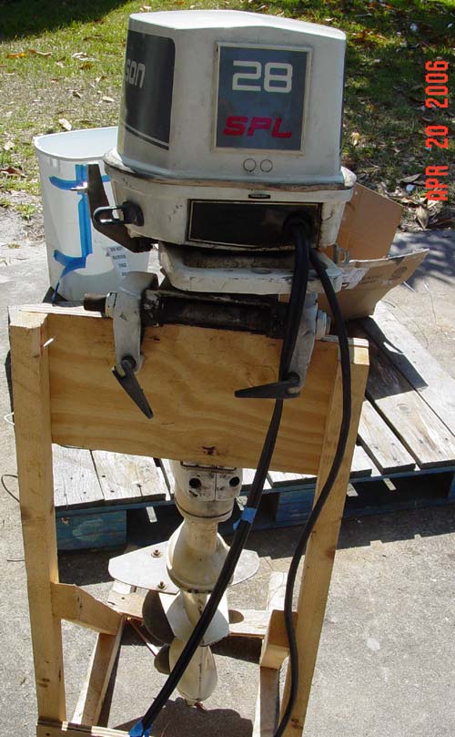 This is a great running Johnson 28hp Outboard. This is a long shaft "20, electric start, charger, two-stroke, 125lbs, and Remote model with all the cables, wireing harnesses, and control boxes included. This engine starts very quickly, has strong compression of around 115-120 PSI on both Cylinders, pumps water excellent, and shifts into gear smoothly. This engine was used on a freshwater lake and has never been used in saltwater. You can tell by the powerhead that the motor is in mint condition inside. The outside has some sun fading but that is all. The original owner traded it in for a larger 40 hp 4 stroke and had mentioned that this motor was completely serviced last year. This included a new water pump, and a carb kit. . Overall if you are in the market for a powerful engine this will do the job! This is the perfect motor for your pontoon boat.