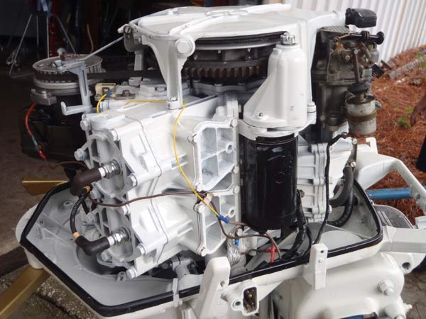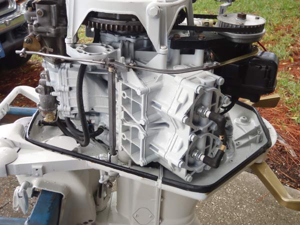 This is a fully restored 1958 Johnson 50 hp Super Sea Horse vintage outboard. This antique Johnson 50 hp has been fully restored, serviced, and is ready to go. This motor has the original chrome and has been restored with dupont paint. Our mechanics went through the lower unit and serviced the powerhead. This Johnson 50 hp Super Sea Horse weighs about 175lbs. It would make a perfect outboard for your classic boat. This motor is from the iconic 1954-1958 era in which the engines were made with a touch of class and flare. The cowling is all aluminum with chrome and original medallions. These make great collector items or to be used as an everyday motor. This engine has a single line fuel system so it will work with your modern gas tank and does not require a pressurized tank.