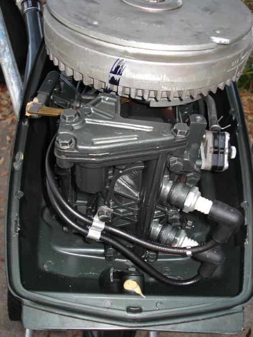 This 6 hp Johnson 1968 outboard has never been run. It still has the original showroom tickets and dealer tape on it. The story behind this motor is that it was bought new in 1968 and then never run. It was always stored inside and just never made it to the water or even started. Aside from the condition of the motor we peaked into the cylinder chamber and verified that there was no carbon on the pistons. This means that it was never run. We also tested it for spark and it lights right up. This is a perfect oppourtunity to go back in time and purchase this engine brand new. This will make a great collectors item.