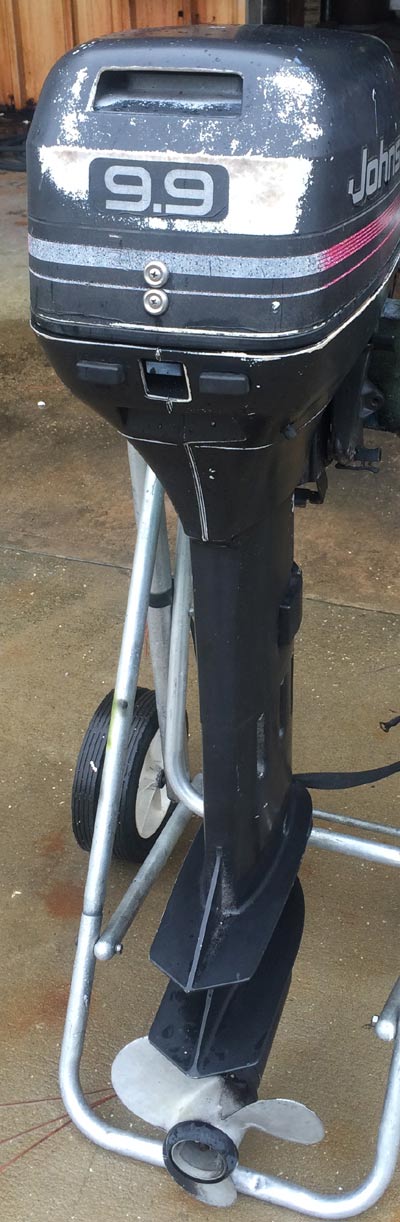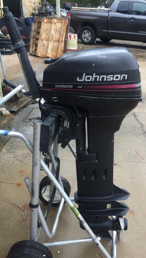 This is a 9.9 hp Johnson Sailmaster Outboard with a 25" extra long shaft. This motor is a 2-stroke only weighing 85lbs. This engine has a high-thrust prop which provides extra torque for moving large boats. This engine has both a manual and electric starter along with a charging system. We have fully boat tested this 9.9 hp Johnson and this motor performs excellent. These engines are very desirable because they are light-weight and have enough torque to push big boats in strong currents. The high-thrust prop displaces water which allows the engine to gain torque. This is a good engine to use on a sailboat, back up kicker, trolling motor, Boston Whaler, Carolina Skiff, Jon Boat, inflatable, or any transom that requires a 20" long shaft. This is a two stroke engine.