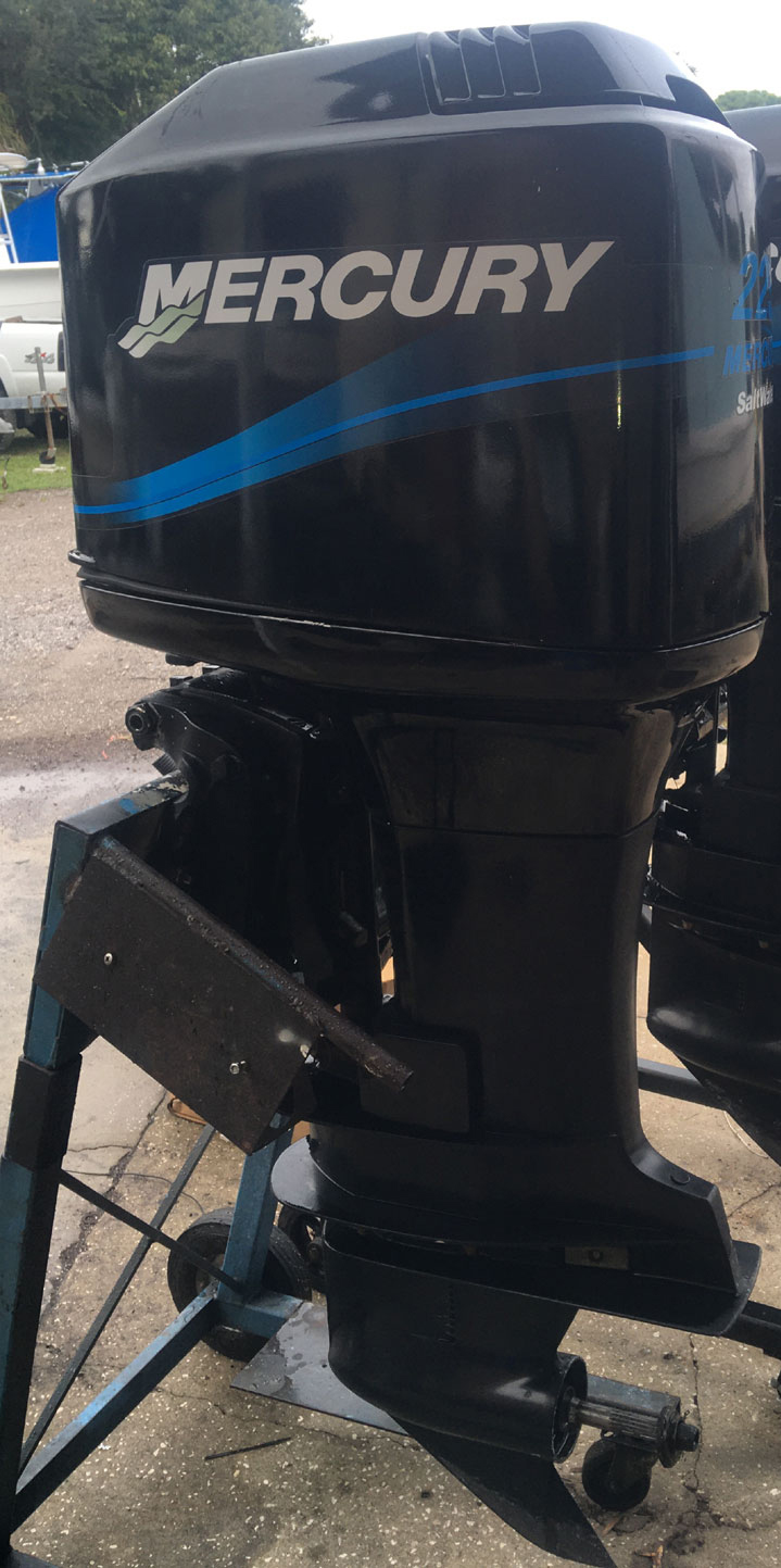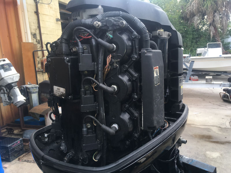 This is a Mercury 225 hp 2-Stroke Carbureted Outboard