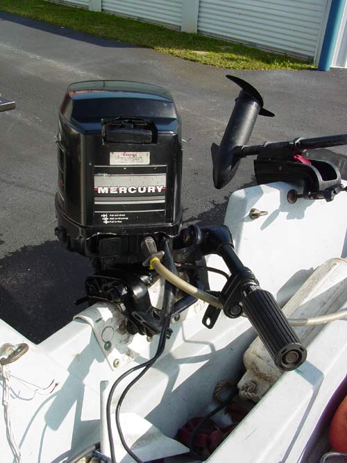 Clean Condition. 15" Short Shaft Tiller Model, Electric and Manual Start, Two Stroke.Great running motor! The 25 hp Mercury is a very popular motor because of the shifter being integrated into the tiller handle. This motor is in clean condition and shows signs of being well maintained. The Powerhead is extremely clean. This motor has great compression, shifts into gear smoothly, and runs excellent. This motor has both manual and electric starter with a charging system. The cowling has a built in light so that you do not need one on your boat when running. This is nice since you can have lights out of the way.This motor starts extremely easy and pumps water good. The prop has some minor dings and the skeg as a little bit of the tip missing but this should not hinder the performance of this engine significantly. This 25 hp Mercury Outboard would make a perfect engine for a Boston Whaler type skiff, John Boat, Sailboat, Bass Boat, Gheenoe, Portable Boat, Poontoon, Flats Skiff, large inflatable, or any other small water craft. Please look at the pictures to get an accurate description of detail. This motor has a 4 bladed prop.
