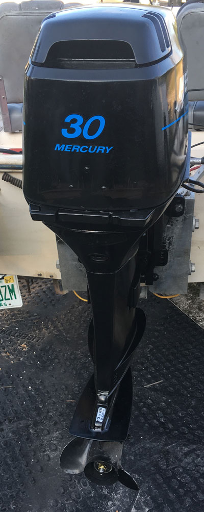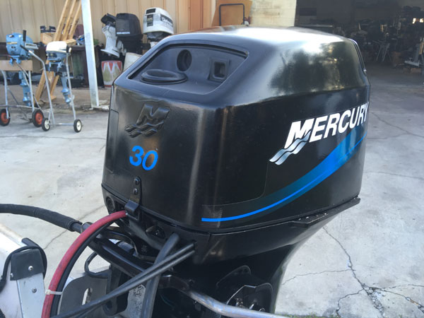 This is a 30 hp Mercury 2-stroke outboard boat motor. This 30 hp only weighs 150lbs and has a 20" long shaft. We have fully boat tested this engine and it is ready to go. This motor would be ideal for a small whaler type boat or jon boat. 2-stroke 30 hp outboards are very desirable because they weigh less than 4-strokes and they have strong torque. This motor has power tilt and trim as well as oil injection. The compression on this motor is very good at about 125psi even. This would make a great boat for the following: 13ft Boston Whaler, Mckee Craft, large inflatable, large aluminum jon boat, flats boat, Carolina Skiff type boats or any other vessel that can handle a 150lbs. 30 hp outboad.