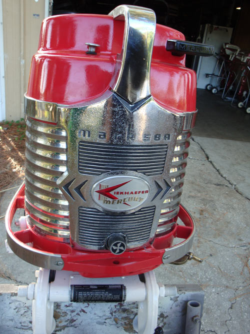 This is a very desirable Classic Mercury 50 hp Mark 58 A Outboard fully restored. This Mercury 50 hp has been completely serviced and runs perfect. These are very hard to find in this condition and are very popular for use on vintage boats. This engine has a 15" shaft which is considered short. This motor has an alternator(battery charger) , electric starter and a pull starter. These classic Mercury Mark58A outboards have 4 cylinders which makes them very smooth while in operation. This Classic 50 hp Mercury is set up for a remote steering wheel. We have fully restored the engine with a Dupont paint job and decals. The engine is in showroom condition that will turn heads in an establishment or on the back of your wooden classic boat. The weight on this outboard is around 150lbs. This will make a perfect opportunity to own a piece of boating history.