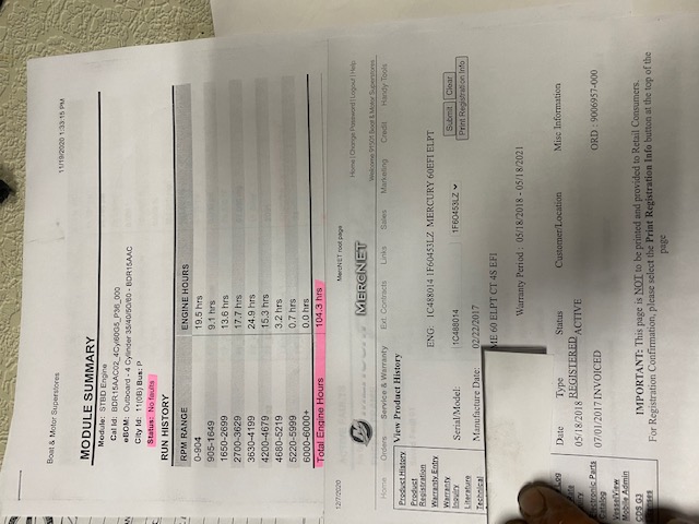 This is a 2018 4-stroke Mercury 60 hp outboard command thrust motor set up for remote. This motor has been boat fully tested and it runs great. This engine only has 104 hours and has factory warranty until May 2021. This engine only weighs 263lbs so it will work with most of your small and large boats! This 4-stroke Mercury 60 hp is a long shaft (20") with power tilt and trim. The 60 hp Mercury is a 4 cylinder model which makes it very powerful and balanced. Compression on this motor is strong at 200psi even. This engine has electronic fuel injection which makes it very economical and easy to start. This is a perfect motor for a Boston Whaler, Pontoon Boat, Bass Skiff, Carolina Skiff, Flats Boat, Big Jon boat, Inflatable, or any small to midsize watercraft.