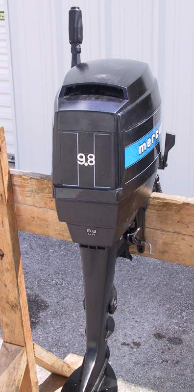 Excellent 10 hp* outboard motor. This is a Mercury 9.8 hp that is in excellent condition and runs perfect. These are very popular motors since they only weigh 65lbs and deliver exceptional power and torque. Replacment parts and modifications such as remote control hookup and electric start are very easy to find. The motor has low hours on it. It is a Short shaft 15", two-stroke outboard motor perfect for a Jon Boat, back up, kicker, Sailboat, porta bote, Gheenoe, Canoe, Inflatable, flats boat, boston whaler, avon, zodiac or any other small boat. These make great recreational motors as well as utility motors for work boats. Very light motor at 65lbs. Fully Boat Tested and Ready To Go! This motor was boat tested on 9-7-2002 and performed excellent. For 65lbs this motor delivers exceptional power and acceleration.