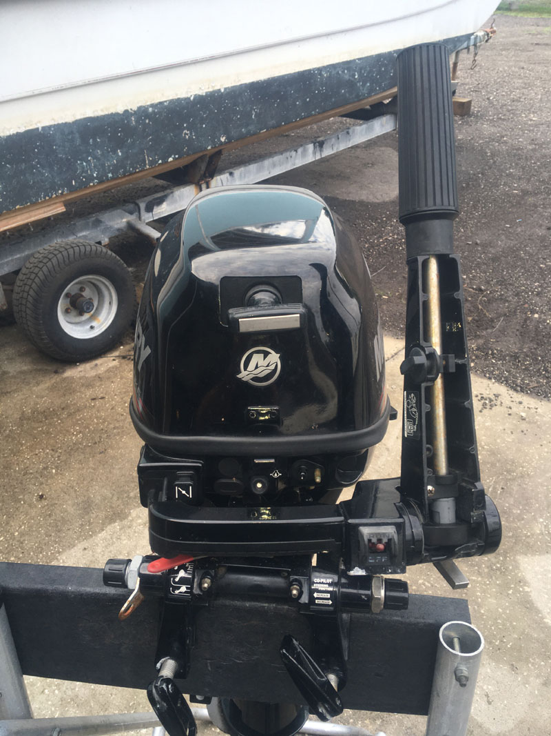 This is a 2015 9.9 hp Mercury 4-stroke outboard boat motor for sale. This engine has very low hours on it and it runs excellent. We have fully run tested this motor and it is ready to go. This is the model where the gear shifter is built into the tiller. This 9.9 hp Mercury has a 15" short shaft, tiller, manual start, and it runs perfect. You will love how quiet these 9.9 hp 4 stroke outboards will troll and idle. These are great kicker outboards as they are very conservative on fuel. This is a great motor for any small watercraft that can handle an 85lbs. 4-stroke 9.9hp outboard.
