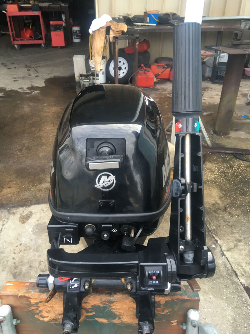 This is a 2014 9.9 hp Mercury 4-stroke outboard boat motor for sale. This engine has very low hours on it and it runs excellent. We have fully run tested this motor and it is ready to go. This is the model where the gear shifter is built into the tiller. This 9.9 hp Mercury has a 15" short shaft, tiller, manual start, and it runs perfect. You will love how quiet these 9.9 hp 4 stroke outboards will troll and idle. These are great kicker outboards as they are very conservative on fuel. This is a great motor for any small watercraft that can handle an 85lbs. 4-stroke 9.9hp outboard.