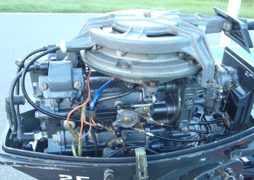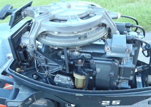 This 25 hp (Yamaha) Mariner outboard motor in good running condition. This Mariner 25 hp was made by Yamaha. This is a short shaft, manual start, tiller model. It is 2 stroke and this Mariner 25 hp has 2 cylinders. This outboard has been fully serviced and is ready to go. These are very popular engines because they are powerful and lightweight at only 100lbs. This motor shifts and runs very good. It has been fully tested and has performed excellent. This would make a great outboard motor for any small watercraft such as a Gheenoe, Canoe, 9-14ft Inflatable, Jon Boat, Boston Whaler, Small Fiberglass Skiff, Small Aluminum Skiff, Sailboat, Kicker, Back Up, or any other watercraft need that can accommodate a 100lb. 2-stroke 15" short shaft outboard motors