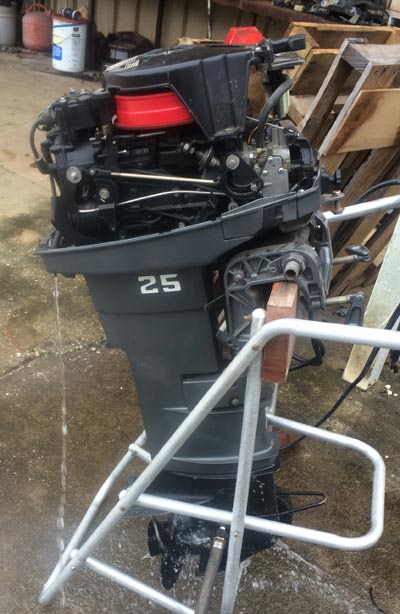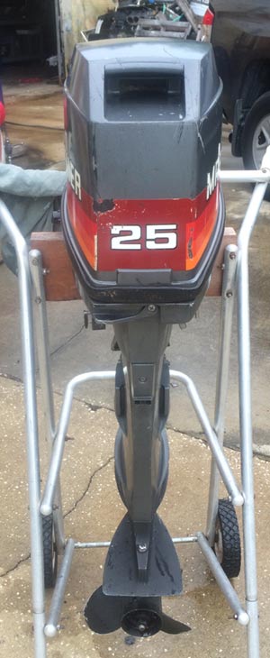 This 25 hp Mariner (Made by Mercury ) Long Shaft outboard that is in great running condition. This Mariner 25 hp is an electric start model with a manual starter as well. Weight of this engine is only 115lbs which makes if feasible for any light boat. We have boat tested this engine and it starts, idles, accelerates, and peformes excellent. This Mariner 25 hp is set up for remote to be used with a steering wheel. Compression on this motor is excellent at around 120psi even . This is the perfect motor for your Small Boston Whaler, Carolina Skiff, Sailboat, use it as a kicker, use it as a back-up, Pontoon boat. use it on any boat that requires a 20" shaft.
