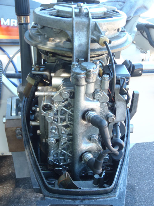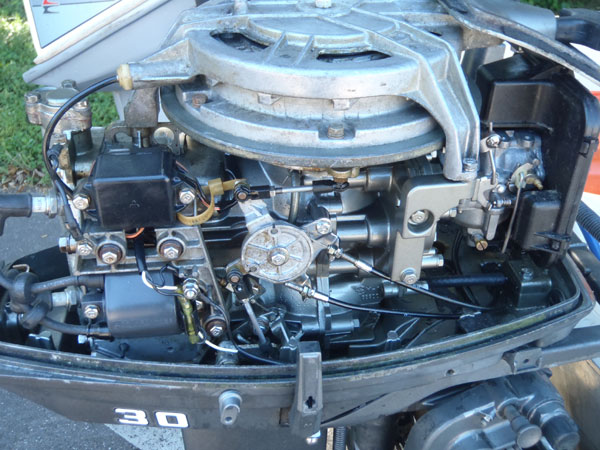 One of the more popular outboard motors we sell. This Mariner was made by Yamaha. This is a Tiller model that weighs only 115 lbs the average weight of a 15-25 hp outboard today. One of the reasons this motor is so popular is because you are able to have a high powered short shaft tiller outboard for your skiff that weighs light enough to carry around. This engine runs excellent. This engine has compression of 125 psi on both cylinders. This Mariner 30 hp is a manual start model making it ideal for almost any boating application. The 15" short shaft makes motor a perfect outboard for: Boston Whaler type skiffs, Big Jon Boats, Bass Boat, Gheenoes, Flats Skiffs, large inflatables, or any other small water craft. You will be impressed by the power of this motor.