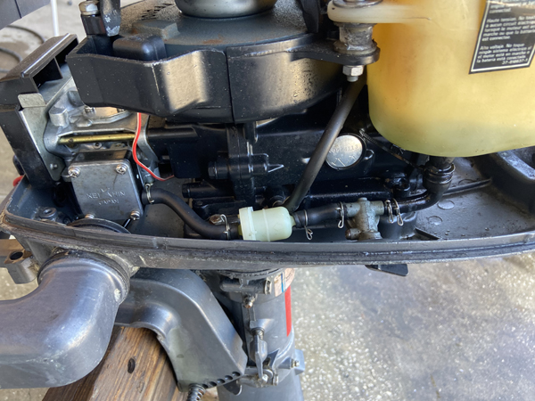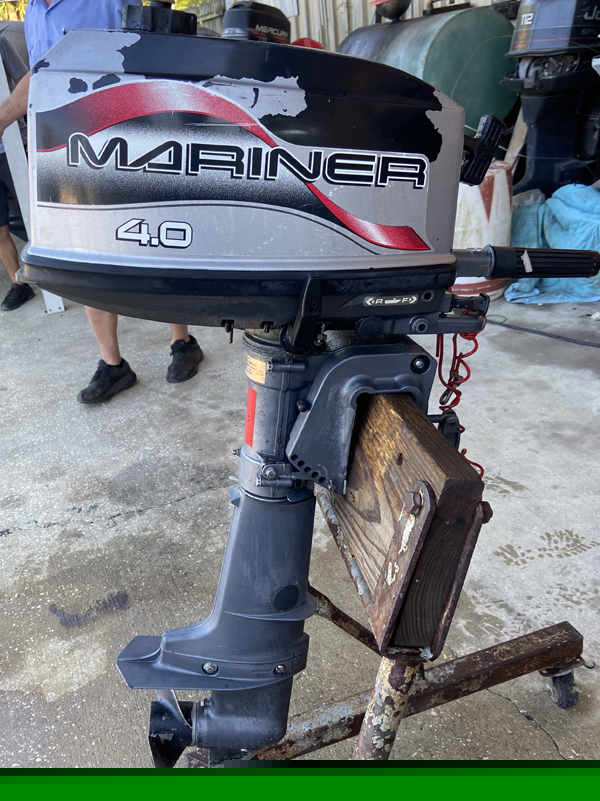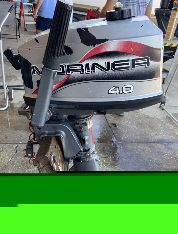 Great running motor! Has a built in gas tank. Very strong 4hp Mariner short shaft outboard. This 4 hp Mariner has a 15" Short Shaft. This mariner is a 2 stroke, tiller style, manual start outboard motor. The engine has twist grip throttle and a built in gas tank. This 4 hp Mariner has been fully serviced with a carburetor cleaning/kit, water pump, and gear lube. This is motor includes forward neutral and reverse and thru-hub exhaust. Light weight at only 45lbs. Perfect motor for a kicker or small sailboat. . We have fully boat tested this engine and it runs excellent! It is ready to go!