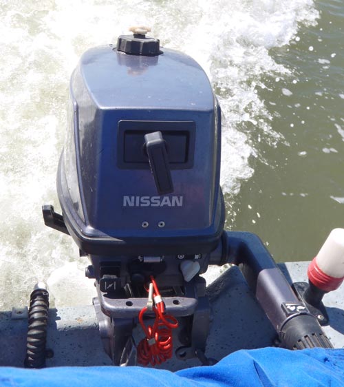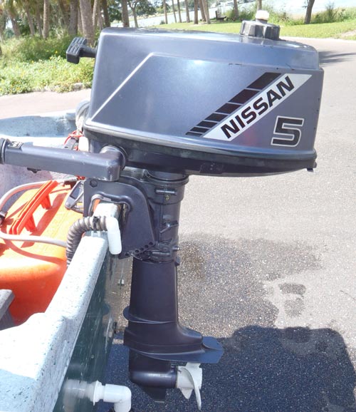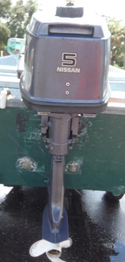 This is a very clean Nissan 5 hp Outboard boat motor. If you are in the market for a light model, clean, or very reliable outboard motor, this motor will fit the criteria. This 5 hp Nissan has a built in gas tank. It has a short shaft 15" outboard with full forward-neutral-reverse . This motor weighs about 42 lbs and will be perfect for a: Jon Boat, Inflatable, Canoe, Reserve Boat, Fishing Boat, Portable Boat, Sailboat(short shaft), kicker, backup reserve, trolling motor, and any other vessel. The convenience of having a tank built in, full gear range, and high power to weight ratio, makes this motor a great choice. We have fully boat tested this motor on a porta-boat.....it runs perfect! This motor planes out with two people on board!
