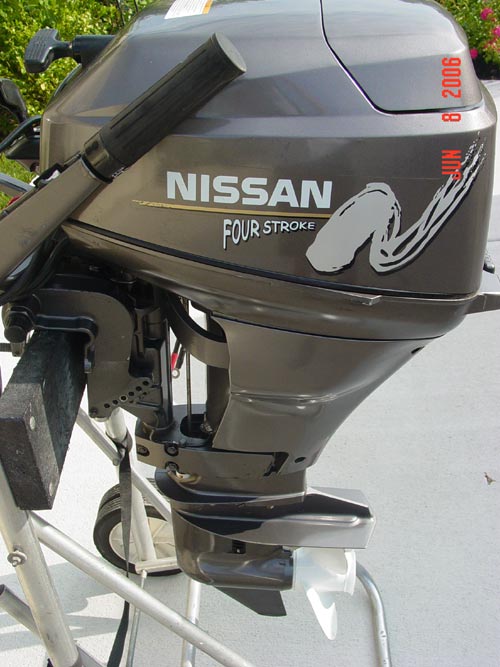 This is a 2000 Model Nissan 4-Stroke Short Shaft 15" 9.9 hp Outboard Boat Motor. Used very low hours in freshwater! This engine is in excellent condition. The motor starts and runs excellent...very quiet. This motor has an Electric Starter, and a Charging System. It is the top of the line model with all the features that attract a wide range of boaters. This is probably one of the most desirable motor for trolling or sailboats. Being that this motor has a four-stroke technology it will troll your boat with ease for many hours. The gear shifter is located on the front of the engine making it effortless to switch gear. Four-Stroke engines are very quiet on the water allowing fisherman to achieve a stealth presence when fishing. This engine weighs 110lbs. This outboard will be ideal for Lake Trolling ,to use as a kicker, emergency back up, sailboat motor, Jon boat motor, perfect motor for the state of California or any body of water that made 2006 EPA mandates. Being that it is a 4-stroke motor the need to mix gas and oil is eliminated. This motor functions like an automobile where you change the oil on a routine basis. These motors are environmentally clean, extremely quiet, and the wave of the future since all motors made after 2006 will have to be 4 stroke. Weight of this motor is 110lbs and can be shipped throughout the USA. If you are in the Market for a 10hp-25hp this is a top choice. This is a perfect motor for an Inflatable, Jon Boat, Trolling Motor, Kicker, Gheenoe Motor, Canoe Motor, Sailboat Motor, Or any other small outboard application.