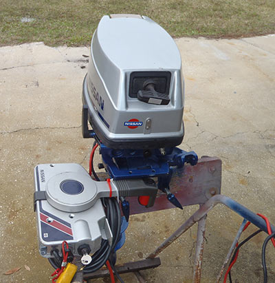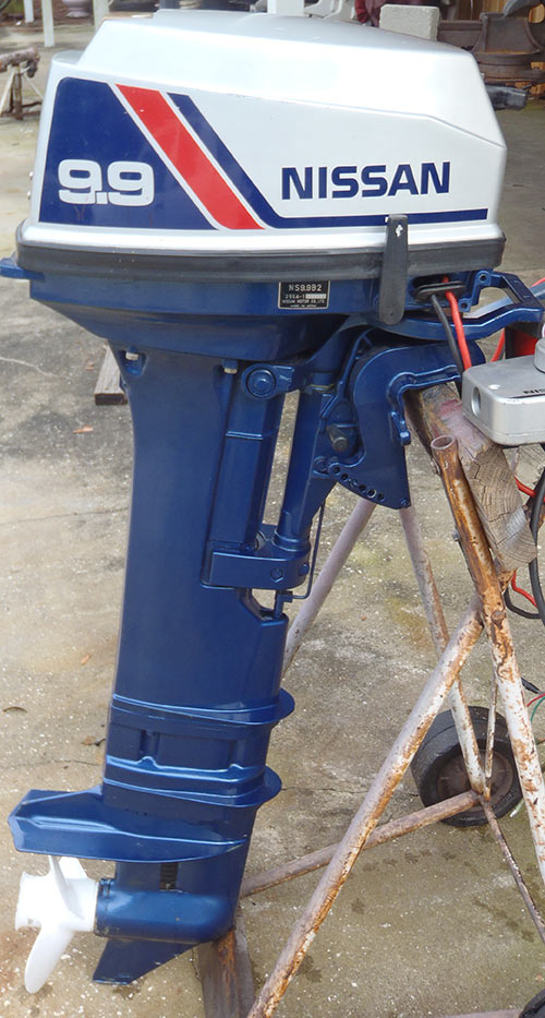 This is a 9.9 hp Nissan outboard motor. This engine has a 25" extra long shaft and is set up for remote (with controls included). This outboard has only seen freshwater for less than 10 hours. The original owner used the motor for one week and then winterized the engine prior to storing it in a climate control building. This engine looks as though it is brand new. We have fully tested this engine out and it runs perfectly. This engine is ideal for sailboats with large cockpits. 25" shaft remote outboards are very rare. The weight of this outboard is less than 80lbs so it will not hinder the transom. This is the ideal sail boat outboard.