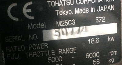 This is a 25 hp Tohatsu long shaft outboard motor. This enigne is a 2-stroke that only weighs around 120lbs. This motor has an electric starter, tiller, manual start, 20" Shaft, and very low hours. We have fully boat tested this motor and it is ready to run. The compression on this motor is even at 140psi. These motors are very desirable as they have a history of being reliable. The power-to-weight ratio on a 25 hp 2-stroke Tohatsu makes it ideal for almost any boat.