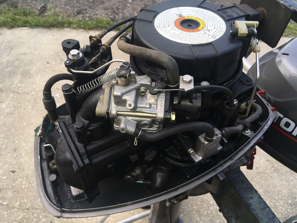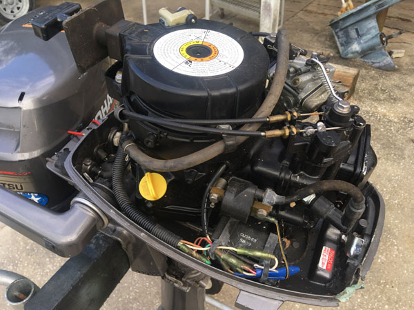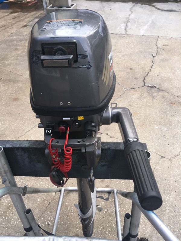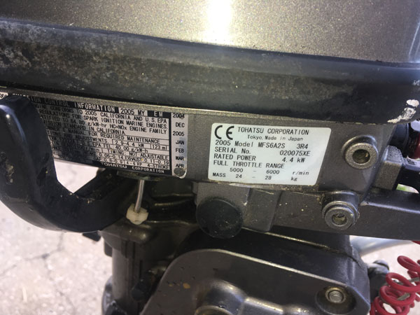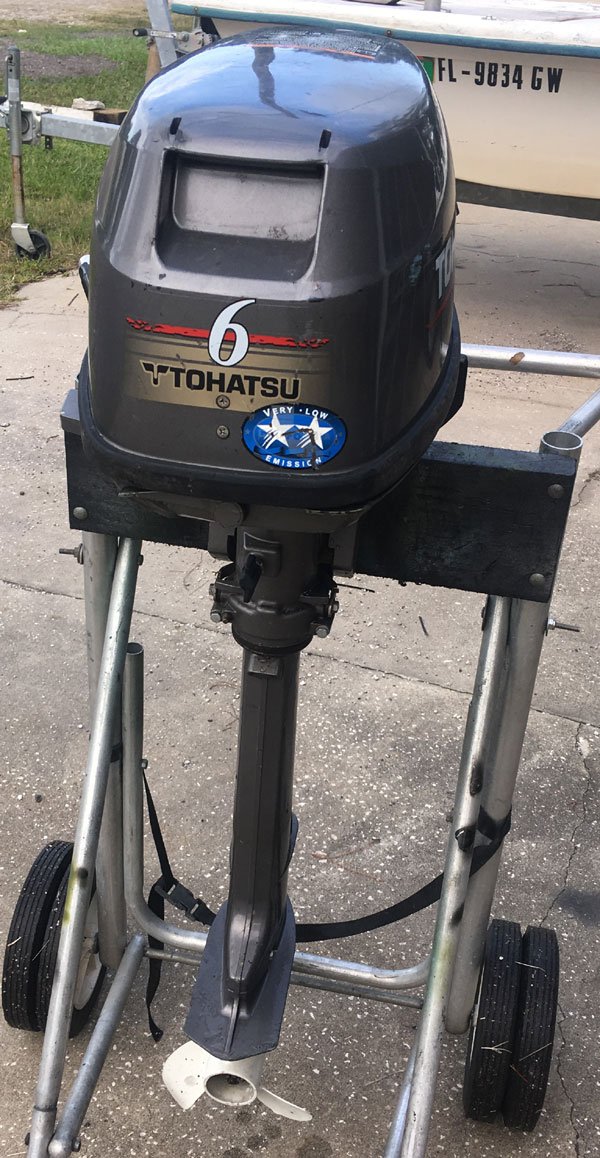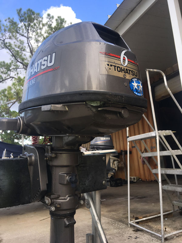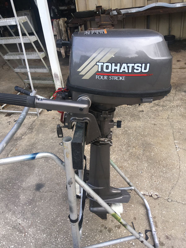 This is a 6 hp Tohatsu long shaft outboard boat motor for sale. The shaft length is 20" which makes it ideal for kickers, sailboats, and transoms with 20" shaft motors. This motor weighs 56lbs and is a 4-stroke. This engine has strong compression, pumps water, shifts, and runs excellent. This 6 hp long shaft 4-stroke has forward-neutral-and reverse. We have fully boat tested this motor and it runs perfect. This would make a great engine to use as a kicker. The condition of this motor is good their are a few cosmetic blemishes and chips but mechanically it is sound.