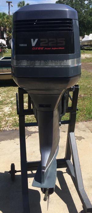 This is a Yamaha 225 hp OX66 EFI outboard boat motor. This engine has a 25" shaft, weighs 494lbs, electronic fuel injection, and power tilt and trim. A local customer traded this engine in to us for a 4-stroke outboard. We fully boat tested this engine and it performs great. This motor has very strong compression, cools good, and idles smooth. This Yamaha 225 hp OX66 outboard engine has electronic fuel injection so it will cold start very easily. EFI outboards tend to get about 20-30% better fuel economy than engines with a carburetor. The OX66 is regarded as one of the best 2-stroke motors in that hp class ever made. Many outboard motor experts regard this engine as being the most reliable outboard motor ever made. The track history on the OX66 far surpasses any 2-stroke v-6 engine. This engine has very strong and even compression .This would make a perfect engine for any bay boat, center console, or skiff that can handle a 225 hp outboard. Prop, controls, gauges, and harnesses are not included.